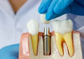 A dental implant most often takes the form of a small, screw-shaped titaniu